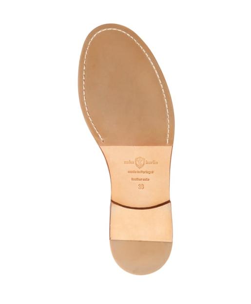 Das Sohlenleder ist von Natur aus abriebfest. Beim Tragen verdichtet es selbsttätig und wird von sich aus wasserabweisend. Doch kein anderes Leder am Schuh wird so stark belastet wie das Sohlenleder. Um die Sohlen dauerhaft zu schützen, sollten die Ledersohlen in regelmäßigen Abständen mit Ledersohlenöl imprägniert werden. Dies hält die Ledersohlen beweglich und erhöht die Lebensdauer.