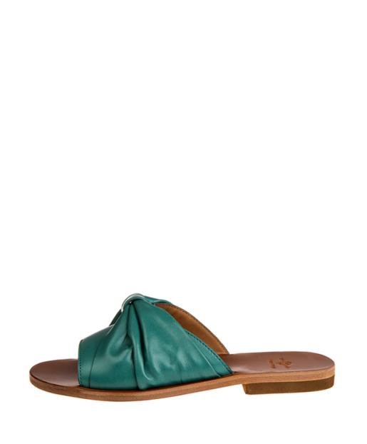 Eine große Schleife über dem Spann ziert diese schlichten Sandalen in frischem Türkis und verleiht ihnen einen klassischen Look, der sich vielseitig kombinieren lässt. Die Pantoletten sind außen sowie innen aus hochwertigem Kalbsleder gefertigt. Eine Vollledersohle und der gummierte flache Absatz geben dem Fuß einen festen Aufsatz. Die Schuhe kommen in einem praktischen Aufbewahrungsbeutel.
