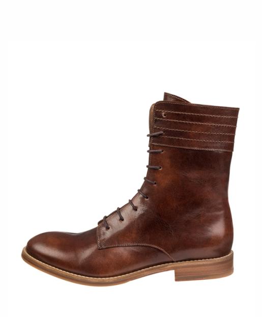 Diese elegante Schnürstiefelette mit schmaler Silhouette zeichnet sich durch ihren hohen Schaft aus, der mit Ziernähten einen raffinierten Look erhält. Das Obermaterial ist aus robustem, vegetabilem Rindsflankenleder in dunklem Cognac gefertigt, innen sind die Schuhe mit Kalbsleder gefüttert. Der kleine Absatz und die gummierte Ledersohle bieten angenehmen Tragekomfort. Die Schuhe kommen in einem praktischen Aufbewahrungsbeutel. Handgefertigt in Portugal.