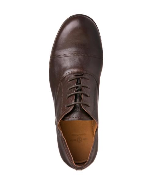 Ein Zeha-Klassiker: der moderne Oxford im 20er Jahre Stil mit Frontkappe und weich geschwungenen Linien am Quartier. Er ist aus vegetabilem Kalbsleder, das gewachst wurde und somit eine geschmeidige und doch griffige, seidenmatt glänzende Oberfläche bekommt, die durch das Tragen eine eigene Patina erhält. Besonders interessant ist die natürlich belassene Lederstruktur. Runde gewachste Schnürsenkel binden die klassische 4-Loch-Schnürung.