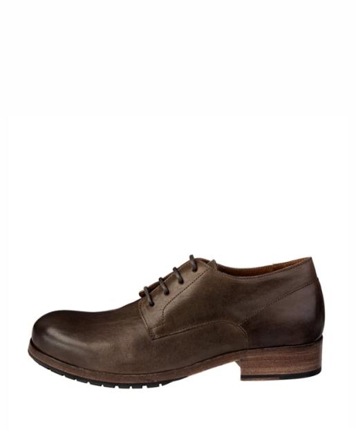 Plain Toe Derby mit runder Vorderkappe im 20er-Jahre Stil aus gewachstem vegetabilem Kalbsleder.