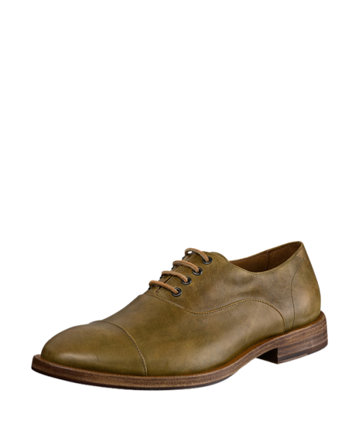Klassischer Frontkappen – Oxford aus Kalbsleder. Die typisch geschlossene 4-Lochschnürung ist mit Lederschnürsenkel versehen. Die feinen Linien der Nähte auf der Frontkappe und an den Seiten, geben dem Schuh ein besonderes Aussehen.