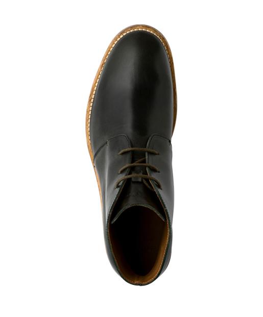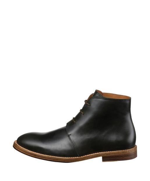 Eine klassische Plain Toe Derby Stiefelette mit flach zulaufender Frontkappe aus vegetabilem Kalbsleder, das gewachst wurde und somit eine geschmeidige und doch griffige, seidenmatt glänzende Oberfläche bekommt, welche durch das Tragen eine eigene Patina erhält. Runde Schnürsenkel schnüren die 3-Lochleiste.