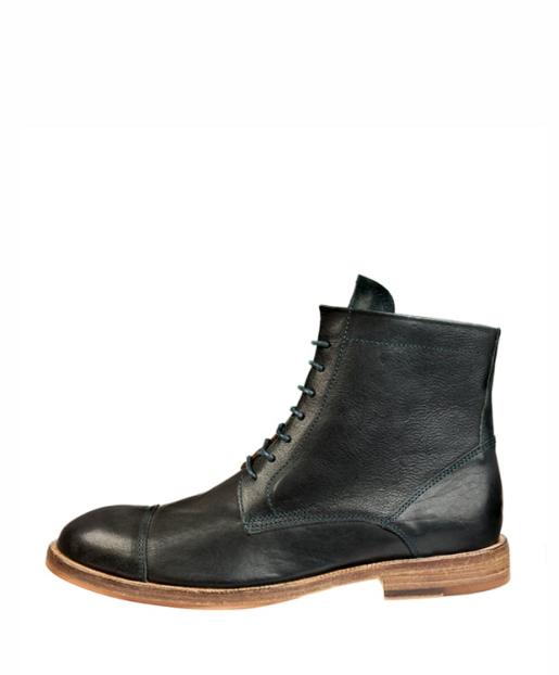 Frontkappen – Stiefelette aus hochwertigem Vacchetta, welche durch seine 7-Lochschnürung über den Fußknöchel reicht. Im Finish bekommt das gewachste Leder durch Bürsten einen seidenmatten Glanz.
