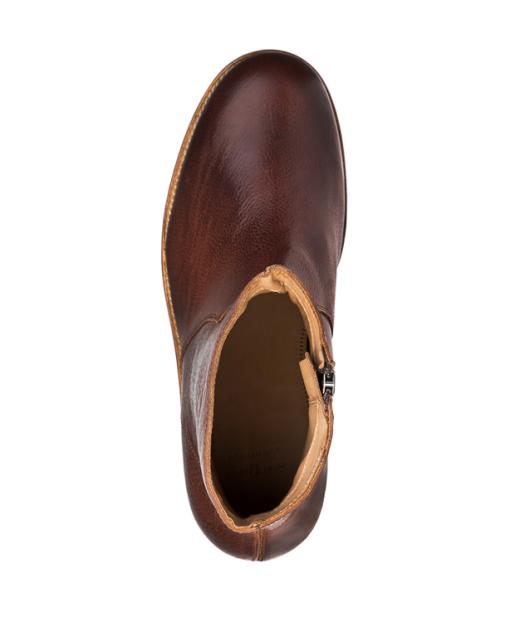 Diese minimalistische Stiefelette verleiht jedem Outfit lässige Eleganz. Sie ist aus braunem, vegetabilem Kalbsleder im Vintage-Look gefertigt. Ein Reißverschluss auf der Innenseite erleichtert den Einstieg. Die gummierte Ledersohle und der kleine Absatz liefern den ganzen Tag angenehmen Tragekomfort. Die Schuhe kommen in einem praktischen Aufbewahrungsbeutel. Handgefertigt in Portugal.